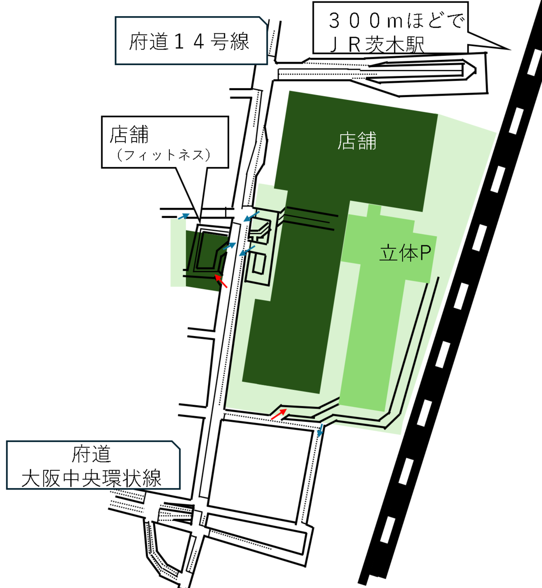 問題の根本は道路の狭さにあります。府道大阪高槻京都線は片道1車線しかなく、約2,000台分の駐車場を持つ大型商業施設への車が集中すれば、渋滞は避けられません。さらに南側100mには大阪中央環状線との巨大交差点があり、JR京都線とこの府道に挟まれた立地が、交通の流れを複雑にしています。