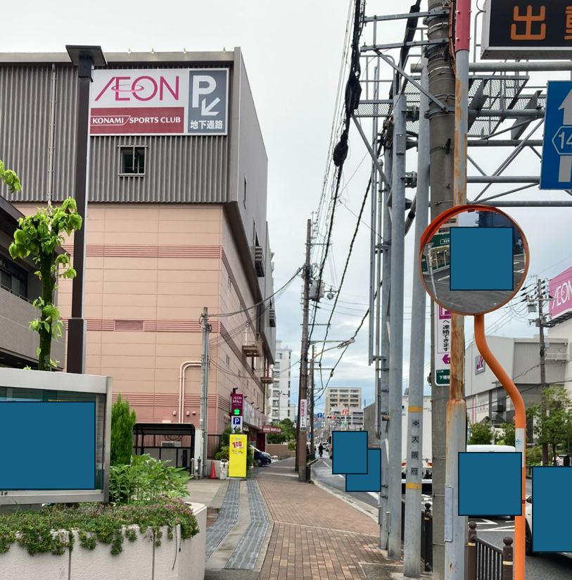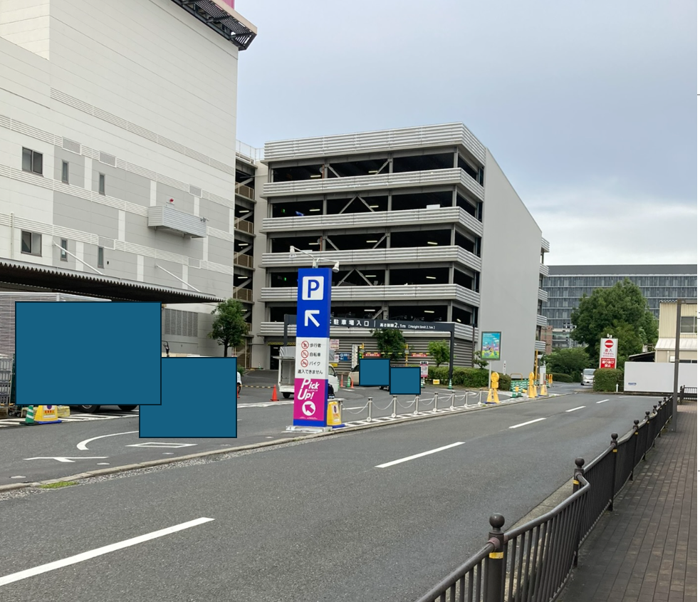 府道を使う場合は、北側から来るなら店舗を通り過ぎて左折入庫、南側から来る場合は道路を挟んだフィットネスクラブがなんとイオンの駐車場出入口であり左折入庫して、地下道で店舗エリア(立体駐車場)にアクセスできます。