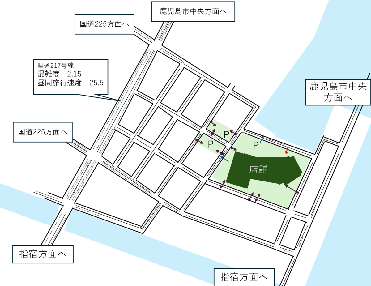 これらの幹線道路は店舗を挟むような形で配置されており、来場者は状況に応じて最適なルートを選択できます。