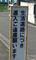 店舗北側には「生活道路につき侵入ご遠慮願います(堺市役所・自治体名)」という看板があります。ところが、公式のアクセス図にはこの道路がしっかりと記載されているのです。
