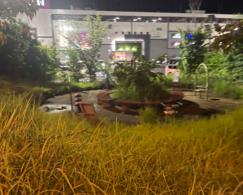 ⑤ フィットネスエリアでひと汗? 店舗の北東側には、屋外のフィットネスエリアがあります。 大きなベンチと、軽く運動できる遊具が設置されているので、買い物ついでにちょっと運動…もアリかも?(笑)