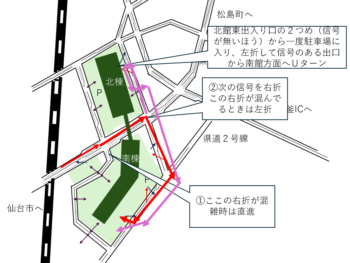 右折渋滞回避ルートや北館経由ルートなど、利用者側の工夫で大幅な時短が可能
