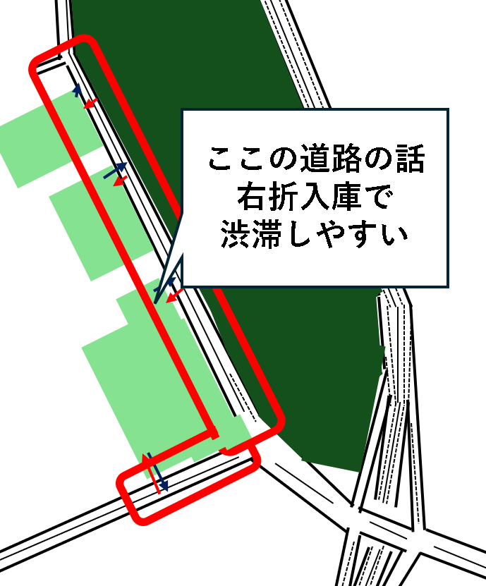 「施設内の問題」が そのまま「一般道路の機能低下」に直結しています。